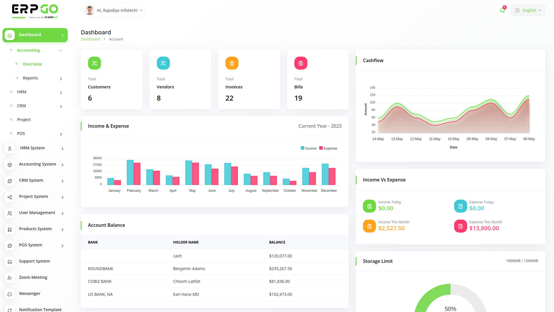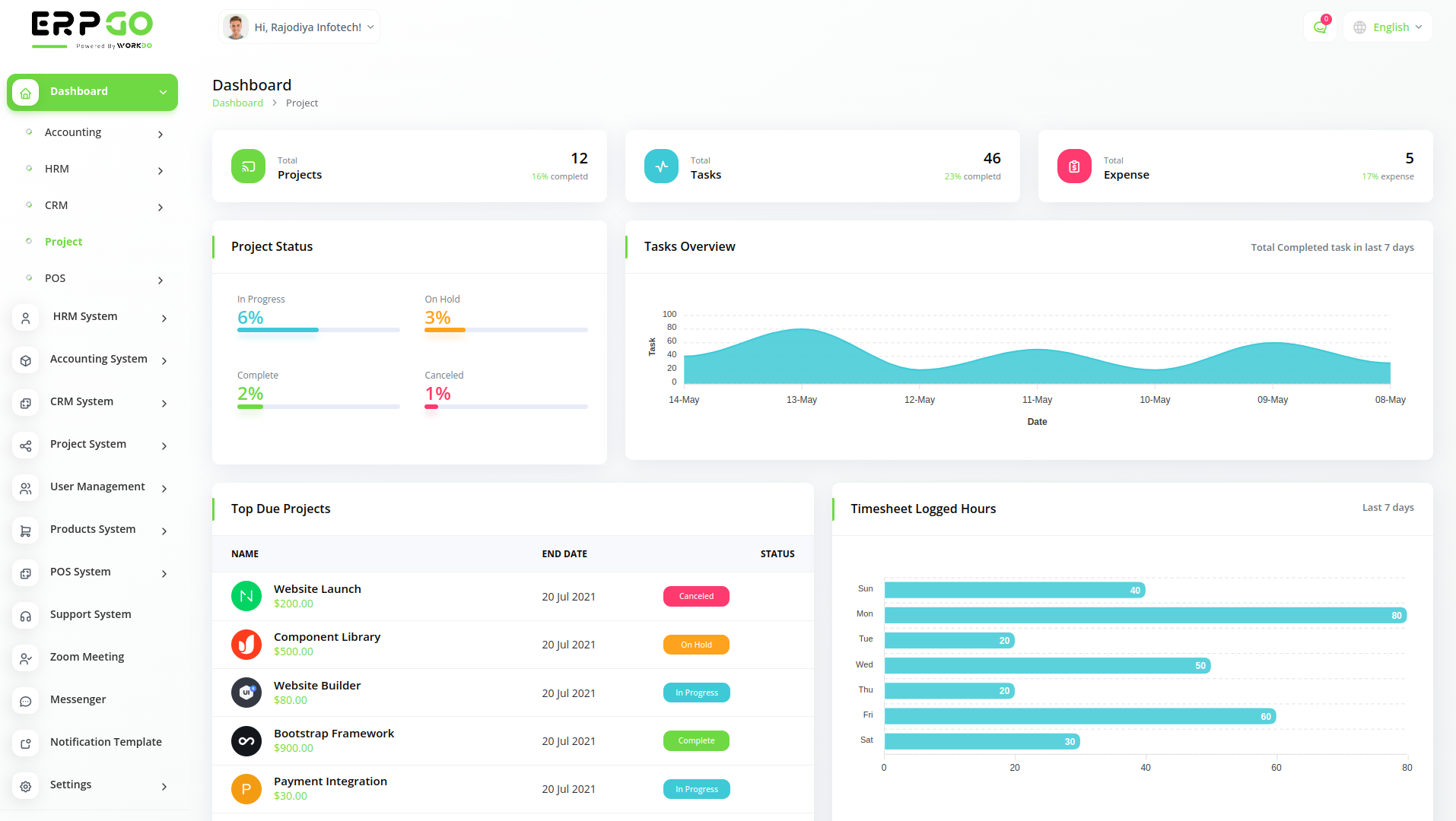 ERPGo SaaS All In One Business ERP With Project, Account, HRM, CRM